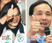中新網(wǎng)6月1日電 據(jù)臺(tái)灣《聯(lián)合晚報(bào)》報(bào)道,民進(jìn)黨主席蔡英文周六前往高雄出席活動(dòng),國(guó)民黨新北市長(zhǎng)參選人朱立倫周三提前南下,與黨籍市長(zhǎng)參選人黃昭順“北高輝映”,周四和臺(tái)北市長(zhǎng)郝龍斌一同舉行“北北共榮”記者會(huì)!坝悺眱扇俗綄(duì)廝殺,戰(zhàn)場(chǎng)將從新北市擴(kuò)及全臺(tái)“五都”。