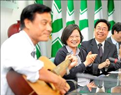 中新網(wǎng)6月3日電 據(jù)臺(tái)灣《自由時(shí)報(bào)》報(bào)道,民進(jìn)黨二日成立“五都”選戰(zhàn)小組,由前秘書長吳乃仁擔(dān)任召集人,為年底“五都選舉”擬定策略。黨主席蔡英文在歡送秘書長蘇嘉全參選大臺(tái)中市長記者會(huì)上,兩人“答嘴鼓”。蘇嘉全還拿著吉他對(duì)著蔡英文唱情歌,蔡英文尷尬地笑了出來。