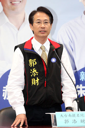 國(guó)民黨5月12日召開(kāi)“五都”被提名人聯(lián)合記者會(huì),大臺(tái)南被提名人郭添財(cái)發(fā)表參選愿景。(“中央社”圖)