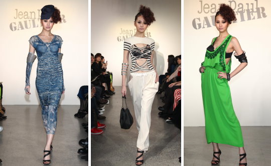 中新網(wǎng)5月7日電 據(jù)“中央社”報(bào)道,2010春夏最具性感話題的時(shí)尚秀,絕對(duì)非巴黎鬼才設(shè)計(jì)師Jean Paul Gaultier(高堤耶)莫屬,而臺(tái)灣的服裝秀則是由名模林葦茹穿上本季設(shè)計(jì)精髓的“飛彈尖錐胸罩”挑逗登場(chǎng)。