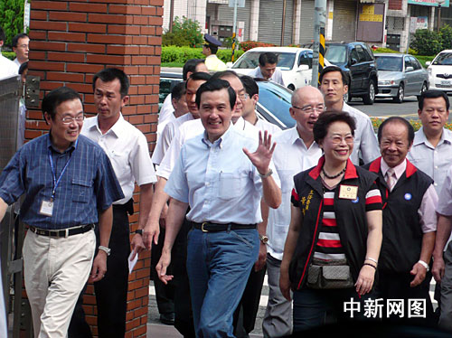 中新網(wǎng)臺北7月26日電 (記者 劉舒凌)上午8點半前,參與中國國民黨主席選舉的臺灣領(lǐng)導(dǎo)人馬英九在現(xiàn)任黨主席吳伯雄等黨內(nèi)人士陪同下前往設(shè)在臺北市文山區(qū)靜心小學(xué)的投票所投票。他說,我出來參選是為了承擔責任,最主要是把黨政運作更緊密結(jié)合,讓臺灣政治事務(wù)推動更為有效。