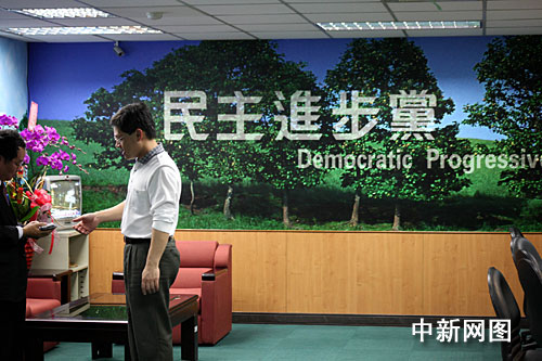 圖:民進(jìn)黨黨部接待大廳換廣告 陳水扁不見(jiàn)