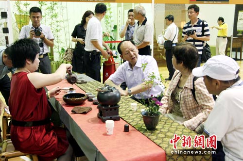 中新社臺(tái)北6月21日電 (記者 黃少華)閩臺(tái)茶業(yè)高峰論壇21日在臺(tái)灣南投中興會(huì)堂舉行,海峽兩岸茶人相聚一堂,暢敘茶韻茶緣,探討深化合作之路,共同弘揚(yáng)中華茶文化。