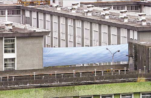 中午時,看守所突然在扁放風(fēng)的球場邊,拉起一大塊帆布,避免讓扁再被媒體拍到。對此,看守所副所長李大竹受訪時表示,這是基于維安的考慮,并評估其它放風(fēng)處是否也要比照辦理。