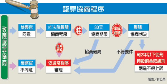何謂“認罪協(xié)商”?簡單說就是被告認罪后,與檢察官、法官針對罪名、刑度等相關(guān)事項進行協(xié)商的刑事訴訟制度。在認罪協(xié)商程序中,被告須與檢察官協(xié)商罪名、刑度后,向法院陳報,經(jīng)法院同意下開庭制作“協(xié)商筆錄”,即完成協(xié)商程序,案件就不能再上訴,宣告定讞。不過,公訴檢察官在與被告協(xié)商前,必須先征詢偵查檢察官的意見,甚至還要經(jīng)檢察長批示準許后,才能實施。
