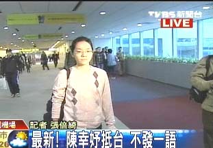 中新網(wǎng)2月9日電 據(jù)臺灣TVBS報道,陳水扁女兒陳幸妤在2月初前往美國參加牙醫(yī)考試,在結(jié)束一個星期的美國行程,陳幸妤在8日搭機(jī),今天早上7點(diǎn)20分飛抵臺灣。