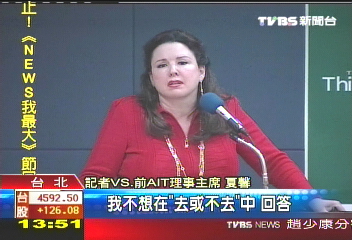 中新網(wǎng)2月13日電 據(jù)臺(tái)灣“今日新聞”報(bào)道,曾經(jīng)被陳水扁贊譽(yù)為“臺(tái)灣守護(hù)天使”的前美國(guó)在臺(tái)協(xié)會(huì)(AIT)理事主席夏馨,一向挺扁到底,但今天(13日)夏馨應(yīng)邀來(lái)臺(tái)演講,卻一反常態(tài),不但只字不提政治,當(dāng)媒體一問(wèn)到“陳水扁”三個(gè)字,夏馨竟然當(dāng)場(chǎng)變臉!