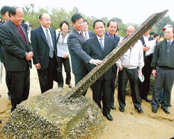 中新網(wǎng)3月30日電 金門與廈門預定8月共同舉辦“橫渡金廈海上長泳”活動,在臺訪問的廈門市長劉賜貴29日由金門縣長李炷烽陪同至小金門雙口海岸實地勘查。針對縣府基于確保選手安全,將協(xié)調(diào)軍方拆除1000米反登陸“軌條砦”,他強調(diào)這意味著將兩岸過去敵對、對峙的軍事設施也清除掉,是一件“好事!”