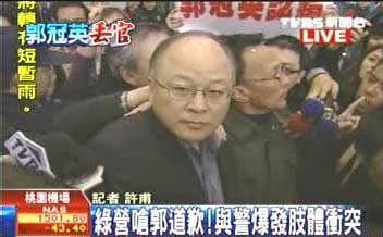 當郭冠英搭上座車離開時,抗議人士還追打座車,黑衣男子則揮拳毆打抗議人士,雙方人馬在機場外持續(xù)叫囂。