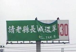 中新網(wǎng)4月14日電 據(jù)臺灣“今日新聞”報道,民進(jìn)黨臺南縣長人選早已確定,但是陳唐山仍堅持不退選。被提名的“立委”李俊毅14日表示,已在中山高永康交流道北上路段架設(shè)“請老縣長牽成后輩”廣告牌,希望能勸退陳唐山。