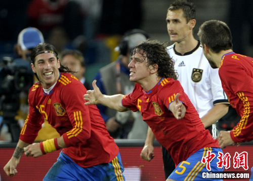中新網(wǎng)7月8日電 今天凌晨2:30,南非世界杯第二場半決賽在德班球場拉開戰(zhàn)幕,由德國隊(duì)迎戰(zhàn)西班牙。憑借普約爾在第73分鐘的頭球破門,西班牙隊(duì)1-0力克德國,與荷蘭隊(duì)會(huì)師決賽。