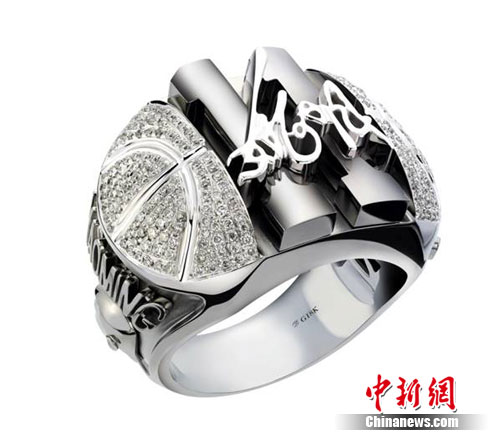 這枚姚明版“至尊鉆戒”的表面是籃球紋樣點(diǎn)綴的晶瑩的鉆石,中部用黑金凸起的色塊寫(xiě)就姚明在休斯頓火箭隊(duì)的隊(duì)服號(hào)碼,其上再鐫刻姚明名字的手寫(xiě)體,筆力瀟灑遒勁,戒指?jìng)?cè)面還有姚明的頭像和英文的YaoMing字樣。整個(gè)戒指共鑲嵌鉆石248顆,通體莊嚴(yán)厚重,對(duì)比鮮明,展現(xiàn)出無(wú)比的王者之氣,象征著姚明在中國(guó)乃至國(guó)際籃球界的崇高威望和領(lǐng)袖氣質(zhì)。