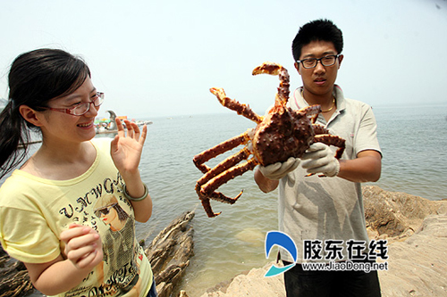 “一只螃蟹6斤重,展開之后一米長,和章魚哥一樣,擅長預測……!必撠熆答B(yǎng)帝王蟹的煙臺市民小魏這樣告訴記者。7月13日,本網以《好大一只帝王蟹 重3公斤價值1700元》為題報道了市民矯先生從俄羅斯購進的大螃蟹,一時間吸引了眾多看稀奇的游客和市民。相隔不到一個星期,其中一只名叫“霸王”的超大螃蟹爆出猛料,因為它要向世界杯明星保羅章魚哥發(fā)出挑戰(zhàn),預測所有魯能比賽。