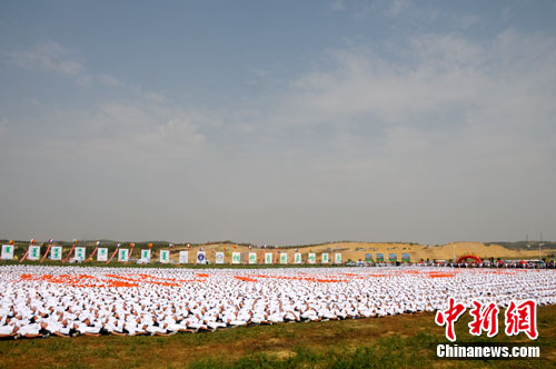 本次“萬(wàn)人多米諾”活動(dòng),以“擁抱自然,親吻草原”為主題,旨在宣揚(yáng)和倡導(dǎo)團(tuán)結(jié)向上的精神和綠色、環(huán)保、低碳的生活理念。來(lái)自鄂爾多斯市多所中學(xué)的學(xué)生和東勝區(qū)直各部門的在職干部10267人參加了今天的活動(dòng)。他們按陣形和服裝顏色排列組成“鄂爾多斯美”的圖案,其中“美”字是用蒙文組成的,充分體現(xiàn)了民族特色。