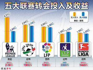 由于對于轉(zhuǎn)會費(fèi)看法不一,各國媒體對于總體轉(zhuǎn)會費(fèi)的統(tǒng)計存在差距,但目前比較可信的數(shù)據(jù)顯示,今夏轉(zhuǎn)會市場上,英超以4.21億歐元的投入雄踞榜首。《每日電訊報》援引了這個數(shù)據(jù),但資料同時顯示,英超轉(zhuǎn)會收入只有1.85億歐元。也就是說,英超凈投入達(dá)到2.36億歐元。但真正令人震驚的數(shù)據(jù)還在后面,英超大約2.6億英鎊的轉(zhuǎn)會費(fèi)流到了歐洲大陸俱樂部的賬戶之中,本國聯(lián)賽之間的人才轉(zhuǎn)會費(fèi)用不足一半,這個數(shù)字比去年同期增長了66%。