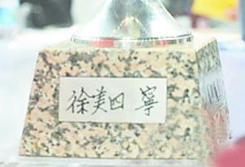 禮花飛下,萬眾歡呼。男籃世錦賽昨日落下帷幕,美國夢九隊登頂成功。隊長比盧普斯與老將奧多姆高高舉起獎杯,一臉的興奮。獎杯非常漂亮,像一朵盛開的蓮花。而獎杯的底座是一塊梯形的石材,四面都刻著字。而有一面的文字讓中國球迷特別的親切,因為那上面刻著四個漢字———“徐美四 寧”。