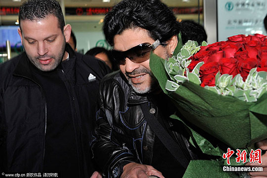 中新網(wǎng)11月3日電 今天上午8時(shí)58分,阿根廷“球王”馬拉多納所搭乘的航班抵達(dá)首都國(guó)際機(jī)場(chǎng),開(kāi)啟了為期八天的“馬拉多納溫暖中國(guó)行”活動(dòng)帷幕。