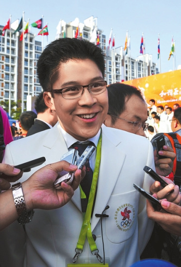 昨天下午,中國香港代表團在運動員村的升旗廣場舉行了盛大的升旗儀式,包括香港代表團團長劉掌珠、副團長霍啟剛在內(nèi)的近百名運動員和官員出席了本次升旗儀式。華西都市報記者獲準進入運動員村升旗廣場參加了本次升旗儀式,在升旗儀式之后,香港代表團副團長霍啟剛接受了華西都市報記者獨家專訪。
