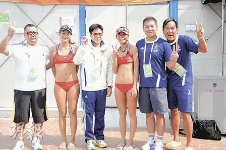 昨日在沙排場(chǎng)地首戰(zhàn)的香港組合謝穎紅及江卓?jī)x,兩人旗開得戰(zhàn)勝韓國(guó)組合,到場(chǎng)觀看比賽的香港代表團(tuán)副團(tuán)長(zhǎng)霍啟剛表示已觀看武術(shù)、體操等賽事,提到港隊(duì)前2天獲2金,他開心地說:“我較喜歡刺激的比賽,排球、羽毛球、乒乓球都不錯(cuò),不過有時(shí)比賽太刺激,中途要走到后臺(tái)不敢看下去呢。”霍啟剛將留在廣州觀戰(zhàn)整個(gè)亞運(yùn),他又表示沙排氣氛熱烈,假如香港主辦亞運(yùn)必會(huì)盡力爭(zhēng)取舉辦這項(xiàng)“沙灘嘉年華”。