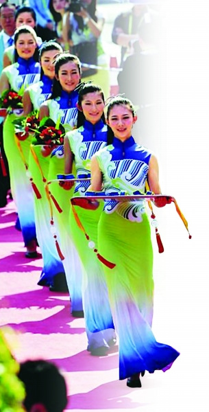 禮儀小姐是每個(gè)亞運(yùn)場(chǎng)館的一道風(fēng)景線,很容易就會(huì)把觀眾的眼光吸引過(guò)去。運(yùn)動(dòng)員也喜歡與禮儀小姐相遇,因?yàn)樗麄兊慕患喟胫粫?huì)在頒獎(jiǎng)典禮上,而爭(zhēng)金奪銀恰恰正是每個(gè)選手為之奮斗的目標(biāo)。表面上看,禮儀小姐工作輕松,就是在頒獎(jiǎng)禮上亮相當(dāng)“花瓶”。其實(shí)不然,她們的工作充滿挑戰(zhàn)性,表面風(fēng)光的背后,有著常人不甚了解的辛苦。