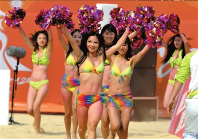 本屆亞運(yùn)會的沙排寶貝分為兩類,一類是廣州本地的,有三支隊(duì)伍,都是職業(yè)拉拉隊(duì),昨天中午表演的是平時(shí)服務(wù)于CBA聯(lián)賽的;另外一支拉拉隊(duì)來自北京師范大學(xué),是通過亞運(yùn)拉拉隊(duì)海選的佼佼者,其中幾個(gè)姑娘還參加過北京奧運(yùn)會的拉拉隊(duì)表演。這些女孩子很有鏡頭感,一看到鏡頭,紛紛爭著擺各種姿勢。女孩們昨天剛剛拿到亞運(yùn)會的工作證,一個(gè)女孩兒指著自己脖子上的證件說:“你知道我掛著這個(gè)證件,走在廣州大街上有多光榮嗎?”本報(bào)記者蒲東峰攝(記者劉旭輝)