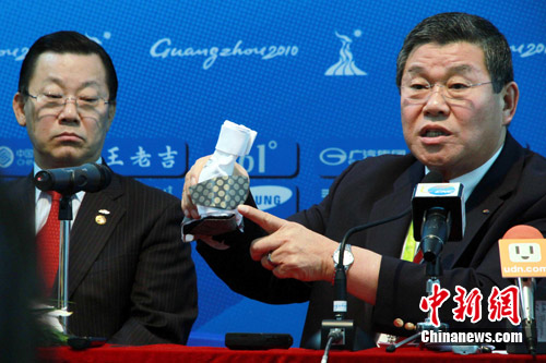 梁振錫說(shuō),再次檢查紅方隊(duì)員的襪子,發(fā)現(xiàn)了襪子上有不尋常的裝置。當(dāng)時(shí)四名監(jiān)督和技術(shù)代表發(fā)現(xiàn)這是感應(yīng)裝置,會(huì)很容易得分那種。因此中止了比賽,并取消了紅方(楊淑君)比賽資格!
