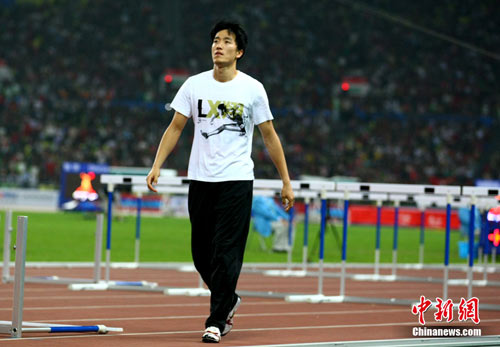 中新網(wǎng)廣州11月24日電(記者 沈晨)廣州亞運會男子110米欄決賽前1個小時,劉翔身著一件印有“廣州”字樣的白色T恤,在奧體中心田徑訓(xùn)練場的跑道上進行著跨欄練習(xí),他的身旁便是當(dāng)晚的競爭對手、隊友史冬鵬。