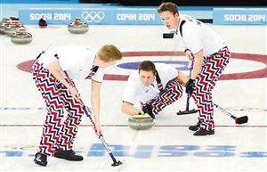挪威冰壺隊(duì)因?yàn)樗麄兠繄?chǎng)必?fù)Q一條時(shí)髦又極其艷麗的運(yùn)動(dòng)褲,在全球社交網(wǎng)絡(luò)上一夜爆紅。美國(guó)《今日體育》報(bào)甚至評(píng)論道:“還比什么賽,挪威隊(duì)已經(jīng)贏(yíng)了!”