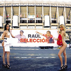 兩個巴西美女比西班牙大多數(shù)的足球記者們更懂足球,她們談起皇馬的技戰(zhàn)術(shù)來頭頭是道。為了支持勞爾重返國家隊,近日,她們在伯納烏球場前做出大膽舉動,不惜為自己的偶像犧牲個人形象。“勞爾這個賽季已經(jīng)打入了20個進(jìn)球,他是冠軍聯(lián)賽、西班牙國家隊和皇馬俱樂部的歷史最佳射手,同時又狀態(tài)正佳,如果博斯克不把勞爾重新招入國家隊的話,那我們實在無法理解!