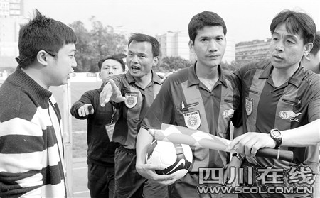 2008年5月底,川足客場遭遇上海東亞,莫偉聰在比賽中,連續(xù)對騰彬并不嚴重的犯規(guī)出示黃牌將其罰下,緊接著又將表達不滿的助理教練孟憲鵬送上看臺,時任川足副總的魏群一怒之下沖進賽場。幾天后,中國足協(xié)對川足開出重磅罰單:魏群停賽8場罰款8000元,楊哲、孟憲鵬各停6場罰款6000元,川足高層一度萌生退意。