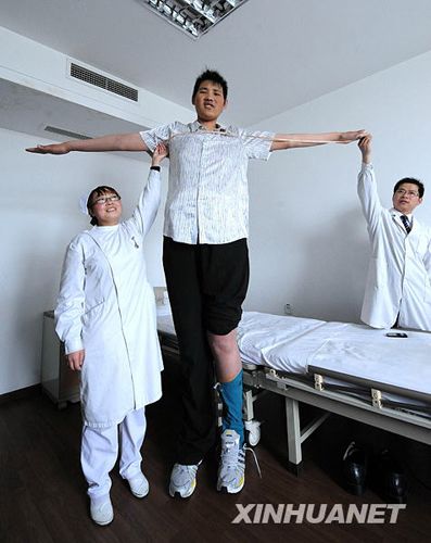 新華網(wǎng)天津4月14日電(記者張建新)被稱為“中國第一巨人”、身高達到2.46米的趙亮,14日上午在天津市安捷醫(yī)院接受手術治療,修復困擾他長達9年之久的左腳陳舊性肌腱損傷。