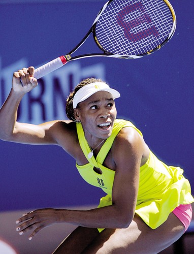黃色是本屆澳網(wǎng)最多女球員選用的球衣顏色之一,但誰(shuí)也沒(méi)有大威那種“黃袍加身”的效果。這套裙裝由她親自設(shè)計(jì),正是去年力奪溫網(wǎng)冠軍時(shí)的款式,今年澳網(wǎng)則變成極其奪目的明黃色版本,正好配合她奪標(biāo)熱門的身份。
