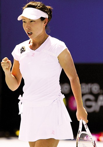 “中國(guó)潔”前天俏麗登場(chǎng),一身純白裝扮在蔚藍(lán)色的場(chǎng)地中顯得格外明亮!皢物w”后鄭潔與新的服裝贊助商簽約,她的球衣不再像過(guò)去那么隨大流,特別是上衣下擺的兩個(gè)蝴蝶結(jié),透出一點(diǎn)時(shí)裝味。