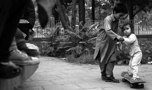 10歲女孩哈迪薩身上的米老鼠T恤表明她中產(chǎn)階級家庭出身,但她只能站在街邊看那些貧苦孩子玩,因為她害怕兩個哥哥手中的電線。去年9月,哈迪薩偷偷地玩了次滑板,結果雙腳被打出了血。“他們有權利打我!惫纤_說。