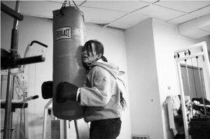 謝莉有個漂亮的鼻子,還有高高的顴骨。她的祖母不喜歡她打拳擊,就是怕賽后她這樣告訴別人“我打過拳擊了”。但是霍克要保護的不是謝莉的臉蛋,而是她繼續(xù)打拳的信心,他知道,拳擊對謝莉有多重要。