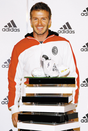 而前天,小貝這個(gè)體壇最勤奮的售貨員又出現(xiàn)在了米蘭的一個(gè)運(yùn)動(dòng)品專賣店內(nèi),依然是酷酷的造型,職業(yè)性的微笑,不過這回不賣內(nèi)褲,改賣足球鞋了,但照樣有上千人前來捧場(chǎng),真不知道,小貝下一步是不是要賣襪子了?