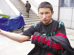 賽后,記者找到了被咬的甘肅選手葉爾蘭別克·卡泰,在隊(duì)友的陪伴下,他正在隊(duì)醫(yī)處給傷口上藥。記者現(xiàn)場可以看到,杯口大的傷口上兩排牙印十分明顯,雖然已經(jīng)經(jīng)過隊(duì)醫(yī)的處理,但是傷口還在往外滲血。一旁陪伴他的隊(duì)友心痛地說:“咬得也太狠了吧,以前我們從來沒遇到過這種事情,太惡劣了!”葉爾蘭別克·卡泰告訴記者,當(dāng)時(shí)被咬了以后自己疼得立刻泄了氣,比賽也沒辦法繼續(xù)下去,反而被對(duì)手扳倒取勝,自己心里“實(shí)在咽不下這口氣”。但是考慮到下午還有比賽,加上結(jié)果已經(jīng)無法改變,他也只好接受這個(gè)事實(shí)。