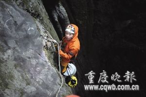 輪到丁長(zhǎng)渝,隊(duì)員的心再次懸起!拔疫B地面瀑布都沒(méi)下降過(guò)!倍¢L(zhǎng)渝信心不足,將身體掛上瀑布邊沿,他的心更是懸到嗓子眼,1米、2米、3米……水流巨大的沖擊力讓他窒息,神智恍惚。突然,他手一滑,身體被沖得急速下降。“抓緊,抓緊……”隊(duì)友大喊。丁長(zhǎng)渝拼命握住下降器,在下降器卡鎖下,他身體隨即制動(dòng),隨后成功落地,嚇得他和隊(duì)友癱坐在地。