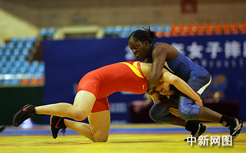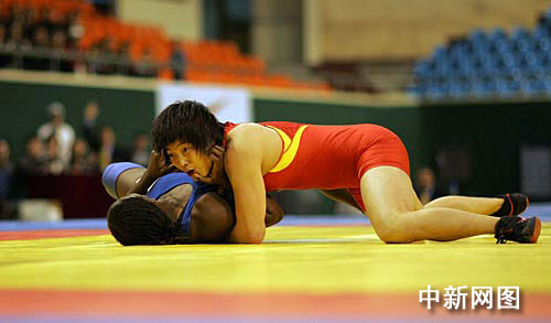 中新網(wǎng)3月22日電(張云)今日晚間,在太原市濱河體育中心進(jìn)行的二00九世界女子摔跤錦標(biāo)賽(團(tuán)體賽)的決賽中,中國女隊不負(fù)眾望,以五比二的戰(zhàn)績?nèi)偌幽么箨,?shí)現(xiàn)女子摔跤世界杯三連霸。加拿大隊獲得第二名,第三名由日本隊奪取,烏克蘭隊取德第四名成績。