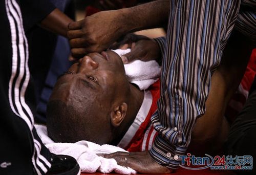 場邊叫出暫停,火箭隊醫(yī)凱斯·瓊斯沖到大叔身邊……在躺了5分鐘之后,玫瑰花園的工作人員甚至用擔架車將穆大叔抬出了場。雖然是場上對手,但開拓者的球迷依然爆發(fā)出熱烈的掌聲;鸺坏靡阎匦?lián)Q上姚明。