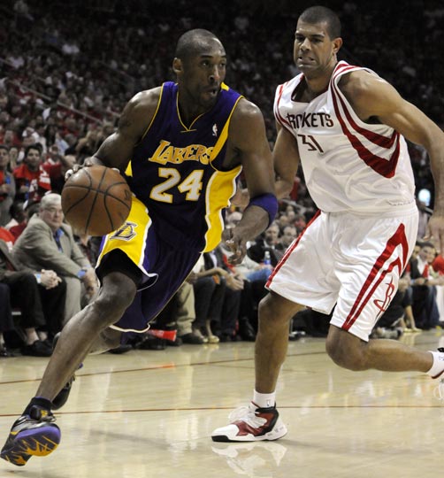 第二輪火箭面對的是西部頭號種子湖人,但休城球員們首戰(zhàn)就給了湖人一個下馬威:第四節(jié)火箭仍然緊緊地咬住比分,但距離末節(jié)還剩4分半時,科比在突破時左膝蓋頂?shù)搅艘γ鞯挠蚁ドw,撞得巨人倒在地上痛苦地打滾。但堅強的姚明在被隊醫(yī)架出場之后仍咬牙重返球場,并在上場后馬上投中關鍵一球,87-81!火箭再次壓住了陣腳。距離終場還剩兩分鐘時,火箭91-81領先10分。關鍵時刻,姚明接小布傳球施展夢幻舞步造費舍爾犯規(guī),再次成為火箭的英雄。最終火箭100-92取勝湖人,季后賽首場拿下一場酣暢淋漓的勝利。