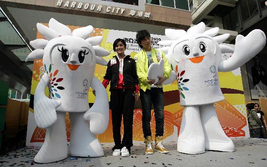 兩個吉祥物設(shè)計以火和獅子為創(chuàng)作元素,展現(xiàn)了香港人自強(qiáng)不息、同處“獅子山下”的拼搏互助精神。吉祥物的設(shè)計師毛沛畿和梁伯強(qiáng)表示,“東仔”和“亞妹”的頭發(fā)象征火焰,代表香港人的活力,身上的煙花斑紋與2009年東亞運動會會徽相呼應(yīng),綻放出奧運五環(huán)的顏色,代表著發(fā)揚(yáng)體育精神。