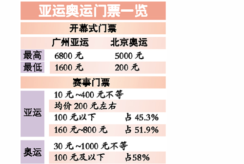 對此,許瑞生說:“比北京奧運(yùn)會高我想那只是個(gè)別座位,低票價(jià)、服務(wù)更多大眾是我們的重要目標(biāo)。廣州亞運(yùn)會大部分門票在10元到200元,這部分是我們主打的!