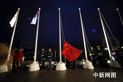 中國代表團今天與開曼群島、朝鮮、伊朗和塞爾維亞等代表團一起舉行升旗儀式,東道主用一段激情的土著舞蹈對客人的到來表示歡迎。
