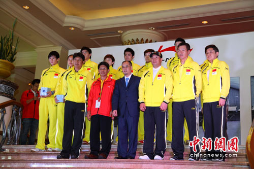 中新網(wǎng)5月9日電(記者 宗晨亮)2010年湯尤杯即將在5月9日-16日開打,國家羽毛球隊(duì)已抵達(dá)馬來西亞首都吉隆坡。大賽在即,近日國家羽毛球隊(duì)參加了“李寧-中國國家羽毛球隊(duì)誓師大會(huì)”,李寧到場與羽毛球隊(duì)總教練共同揭開了這次出征的新裝備,林丹、鮑春來等國家羽毛球隊(duì)主力隊(duì)員也身穿全新的比賽服裝集齊亮相,總教練李永波則代表國家羽毛球隊(duì)信心十足地表示“我們一定要在這次的湯尤杯上繼續(xù)取得佳績,力爭衛(wèi)冕。”
