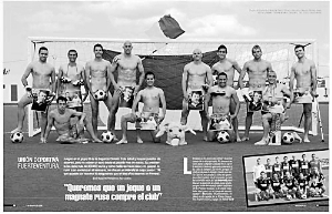 目前西乙FUERTEVENTURA俱樂(lè)部的球員們已經(jīng)數(shù)月沒(méi)有領(lǐng)到工資,雖然西班牙球員大聯(lián)盟介入了這起勞資糾紛,但是球員們最后得到的回復(fù)是可能兩年后才能領(lǐng)到被欠的薪水。于是,憤怒的球員拍攝了一組裸體圖片,并手持阿布等富商的照片,就是希望某個(gè)阿拉伯王子或者阿布能前來(lái)收購(gòu)俱樂(lè)部。