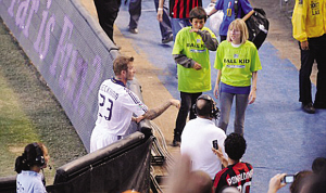 不過更令球迷關(guān)注的是,在這場小貝重回銀河隊(duì)的首個(gè)主場比賽中,主場的銀河隊(duì)球迷對(duì)小貝不忠于球隊(duì)、想要離隊(duì)重返米蘭或轉(zhuǎn)回英超的表態(tài)非常不滿,現(xiàn)場的銀河隊(duì)球迷更是不停地狂噓小貝。而在人稱“洛杉磯暴走隊(duì)”的銀河隊(duì)死忠球迷區(qū),更是懸掛了各種嘲諷、奚落甚至辱罵小貝的大幅標(biāo)語。有的標(biāo)語寫到:滾回家吧,騙子!有的則寫到:你做的事很邪惡,而你自己本身就代表邪惡!