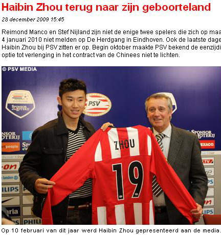 “周海濱目前已經(jīng)回到了中國,在這里,埃因霍溫誠摯的祝福他能夠在未來取得更大的成功!卑R蚧魷刈詈笙蛑芎I表達(dá)了俱樂部的祝福。