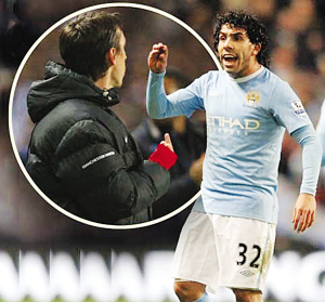 昨天,英格蘭聯(lián)賽杯半決賽首回合進(jìn)行了一場(chǎng)曼徹斯特同城德比,結(jié)果曼城在第17分鐘就先被對(duì)方隊(duì)長(zhǎng)吉格斯率先破門(mén)的不利形勢(shì)下,憑借前曼聯(lián)舊將、阿根廷國(guó)腳前鋒特維斯在第40分鐘的點(diǎn)球、第65分鐘的頭球,最終在主場(chǎng)以2:1險(xiǎn)勝曼聯(lián)。值得關(guān)注的是,綽號(hào)“野獸”的特維斯此番面對(duì)“拋棄”他的老東家紅魔曼聯(lián)首度進(jìn)球,而且還是梅開(kāi)二度。不過(guò),反咬紅魔快意復(fù)仇的“野獸”在進(jìn)球后帶有挑釁、示威意味的張狂慶祝動(dòng)作,卻引發(fā)了一場(chǎng)鬧劇。
