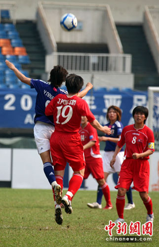 亞洲勁旅朝鮮隊(duì)開(kāi)場(chǎng)就失利,被判罰點(diǎn)球,日本隊(duì)7號(hào)前鋒安藤梢主罰為日本隊(duì)奪得第一分。隨后,9號(hào)前衛(wèi)永里優(yōu)季再進(jìn)一球,最后朝鮮隊(duì)以1:2負(fù)于日本隊(duì)。另一場(chǎng)緬甸0:2負(fù)于泰國(guó)隊(duì)。